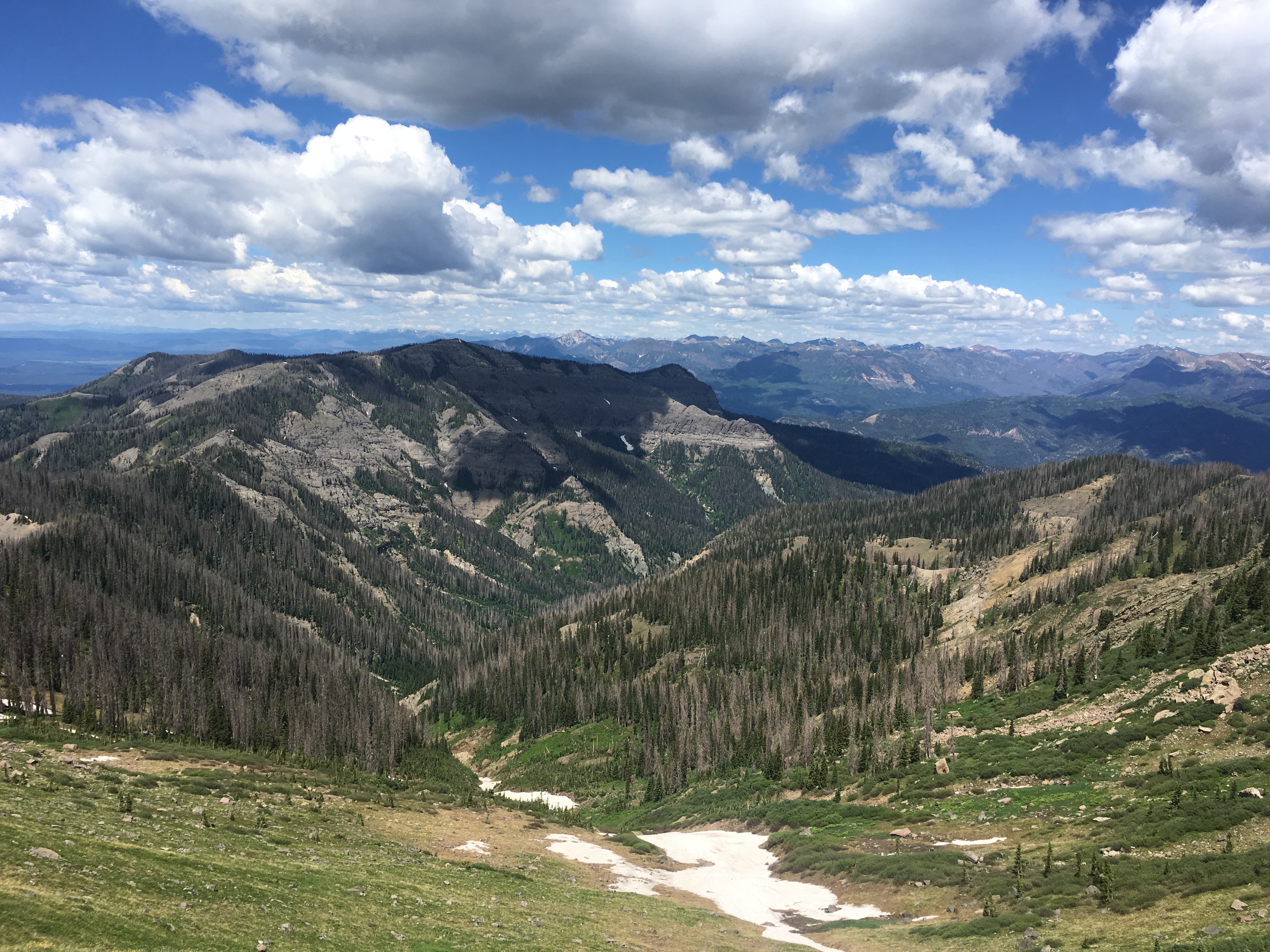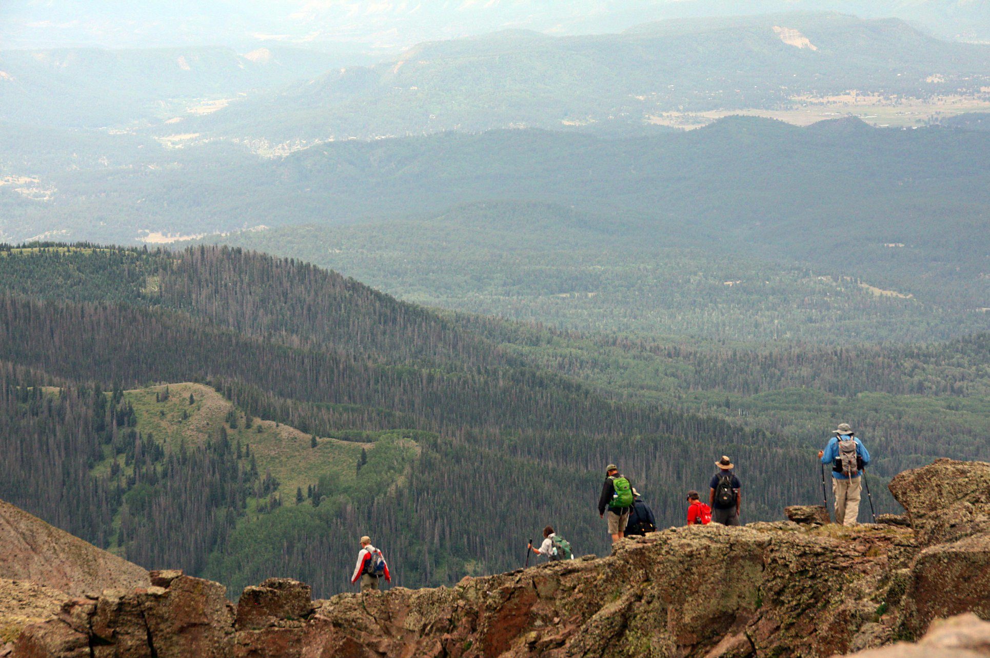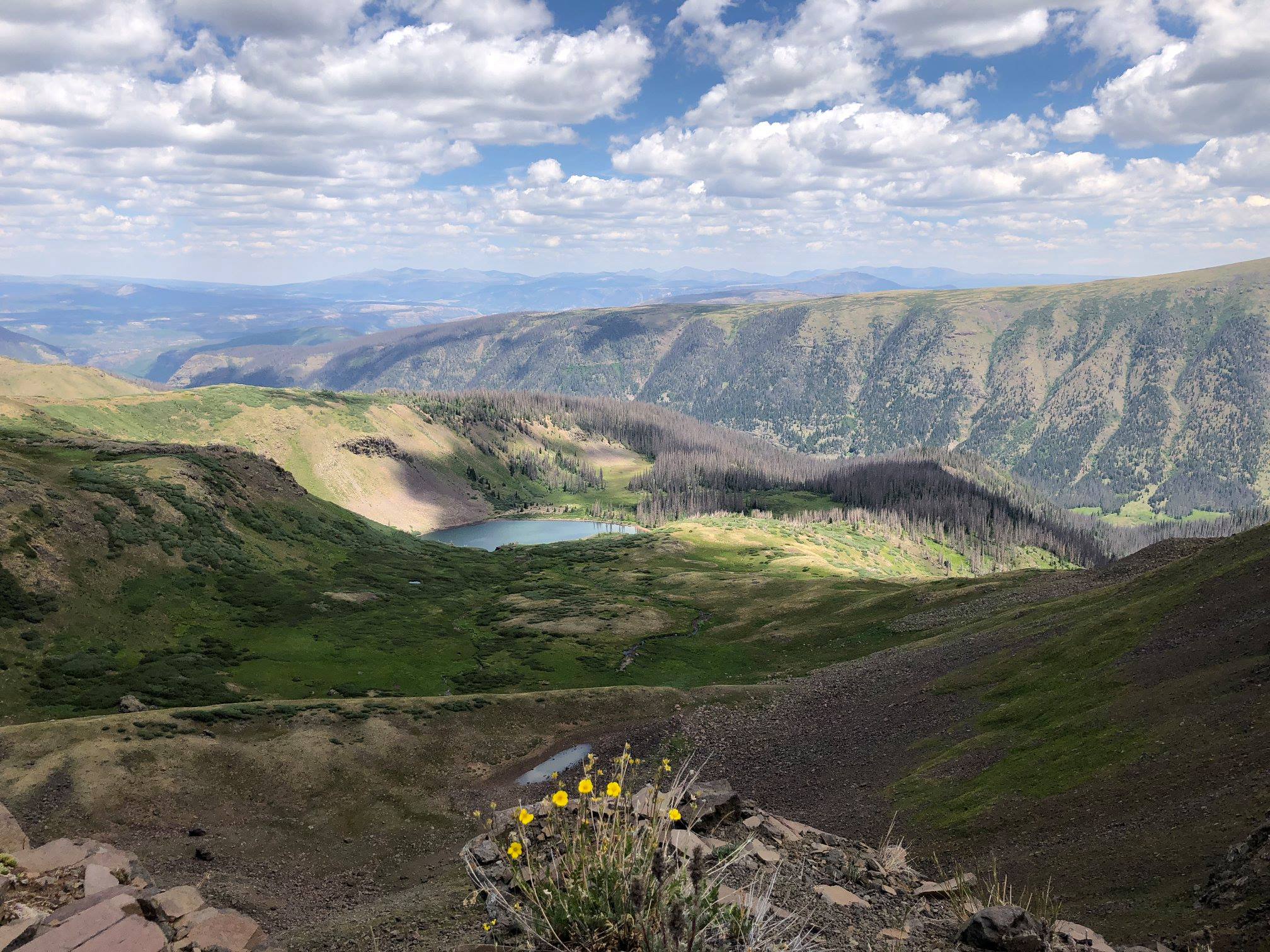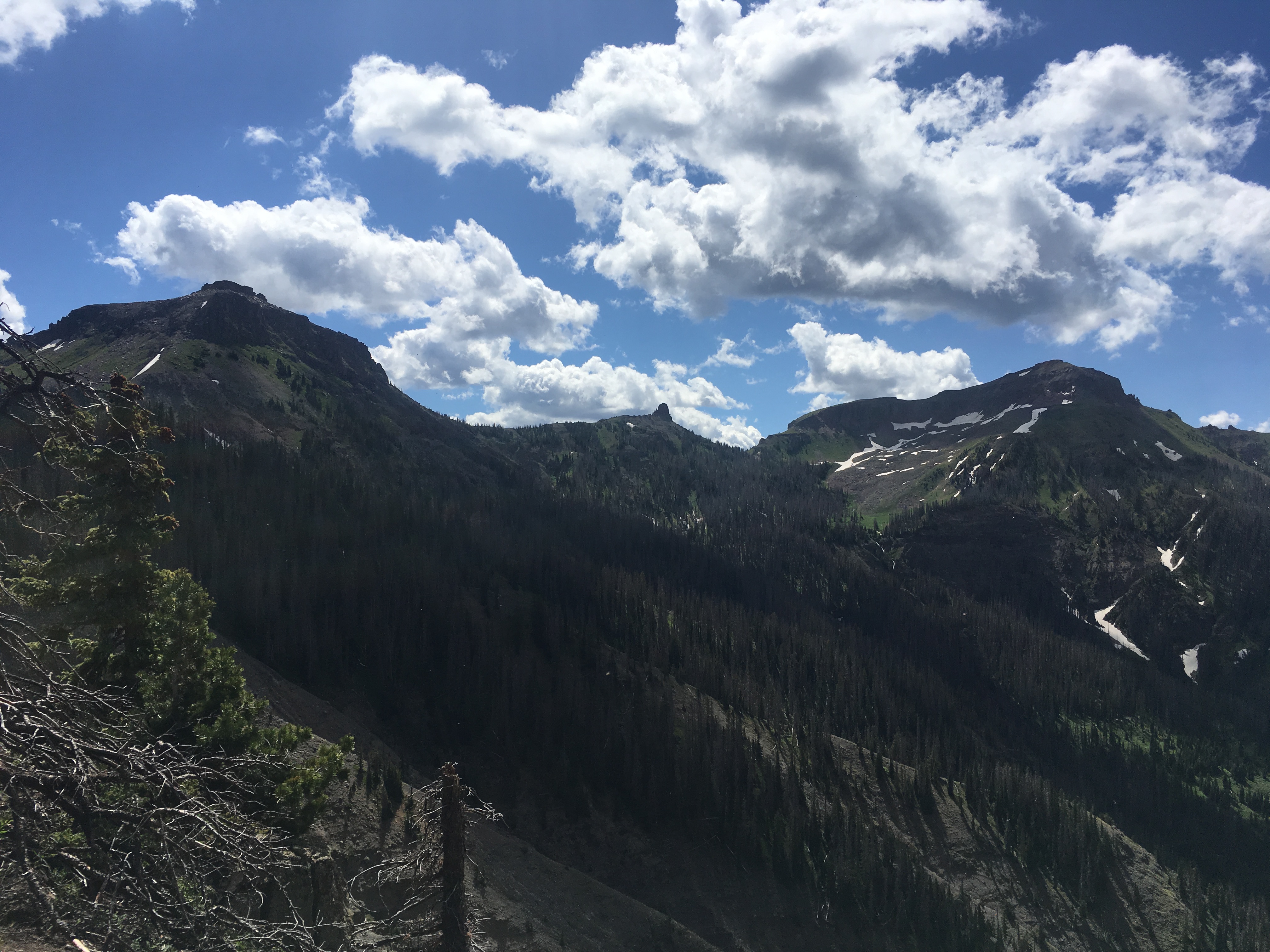 Short Trail Summary: This trail usually has great flowers and fine views; it is suitable for dogs. This description is to the junction with the Quartz Creek Trail No. 571. From the trailhead, begin climbing initially through meadows and aspen forest. The trail begins to switchback with occasional views of Square Top, Nipple Mountain and Blackhead Peak. Once on the ridge, there are views of these plus Sand Mountain to the north. There is a steep, side-hill climb to Quartz Ridge and the Keyhole (also known as the “window”). The Keyhole is a good destination for a day hike being 3.0 miles (one-way) and 2050 vertical feet. From here, the terrain changes dramatically. If you are feeling good and the weather is cooperating, one can cross to the other side of the ridge, but be careful as there is a short section that is steep with poor footing (sit on your butt if unsure). There is a great lunch spot only ¼-mile past the Keyhole with a fine view of the South San Juan’s. Continuing on, at the junction with Quartz Lake Trail No. 568, turn east and descend to Middle Earth on spectacular trail construction consisting of rebar and cable done with special permission after becoming a designated wilderness area. From junction it is 1 mile to Quartz Lake with a descent of 470 ft. Soon pass Blanco River Trail No. 573 on the south. Continue with occasional clear tread along an undulating up and down traverse to the saddle of the 12,245-foot Quartz Creek Trail junction.