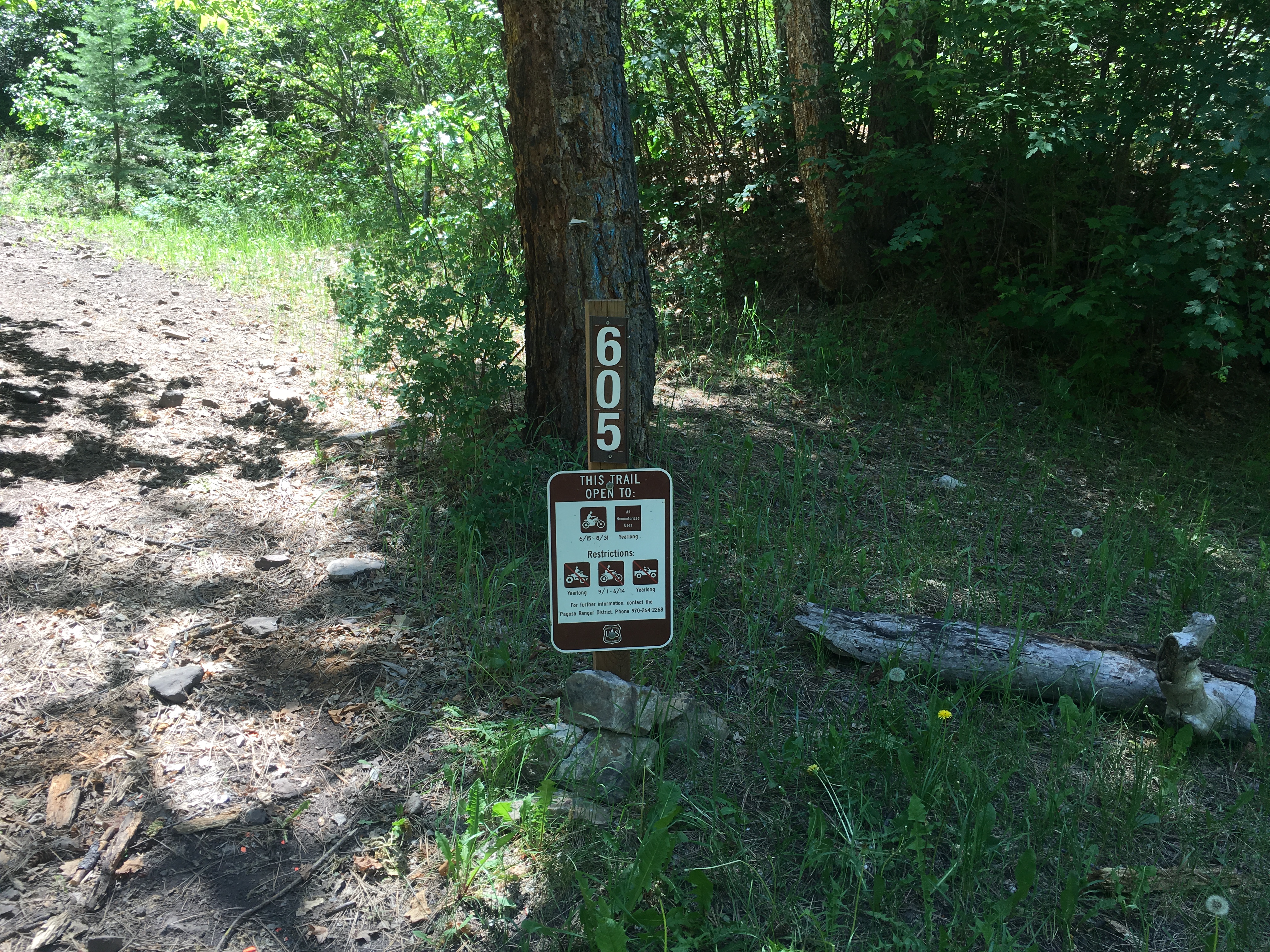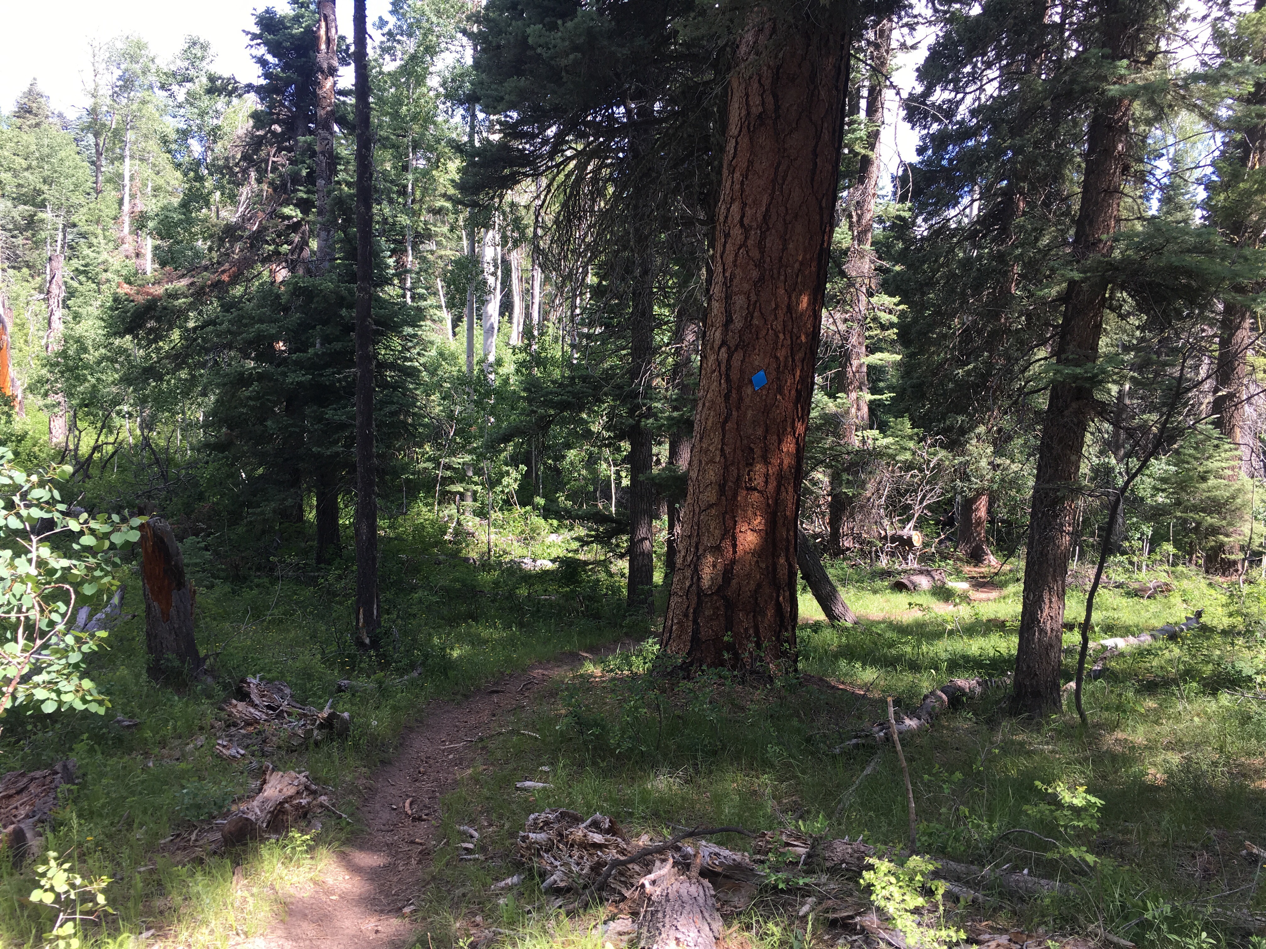 This trail is best done as a loop with Snow Ranch C Trail, but can be done as an out and back. If done as a loop, start at the Snow Ranch parking area and ascend the ATV double track for 3-miles until the intersection with Snow Springs single track. There are nice views along the way, including a great view of Chimney Rock. If you want to make it longer, go up to the left for a little less than a mile where the trail forks and turn around. This section of trail is rarely used and is quite overgrown. For an easier route, take a right off of the Snow Ranch double track and descend 2-miles to FS Road 628. Reaching the road, take a right and travel approximately ½ a mile to the starting trailhead. The whole loop is about 800 feet of elevation change.